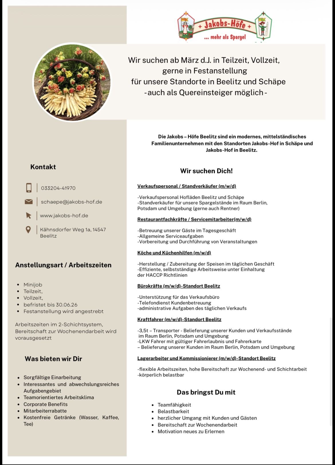 Verkaufspersonal Hofläden Beelitz und Schäpe