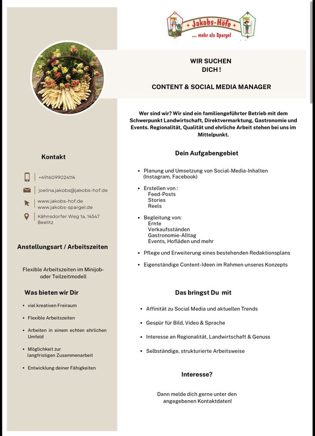 Schriftliche Bewerbung an: schaepe@jakobs-hof.de